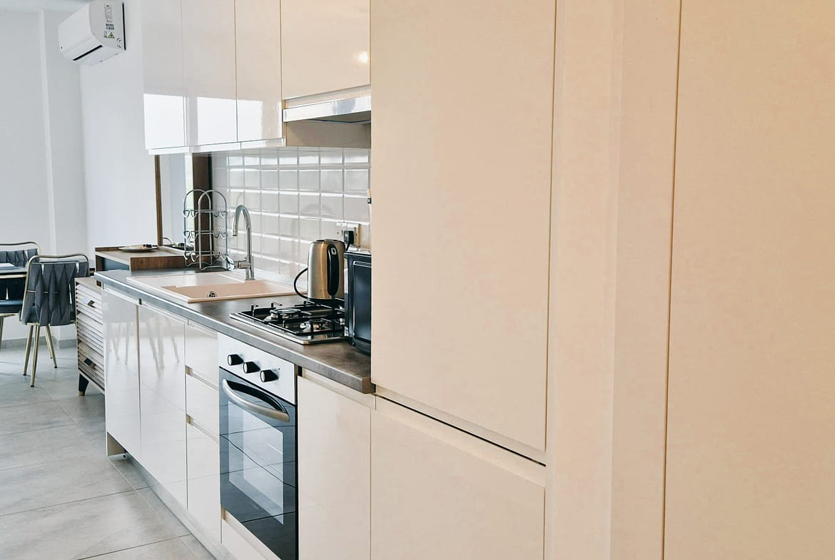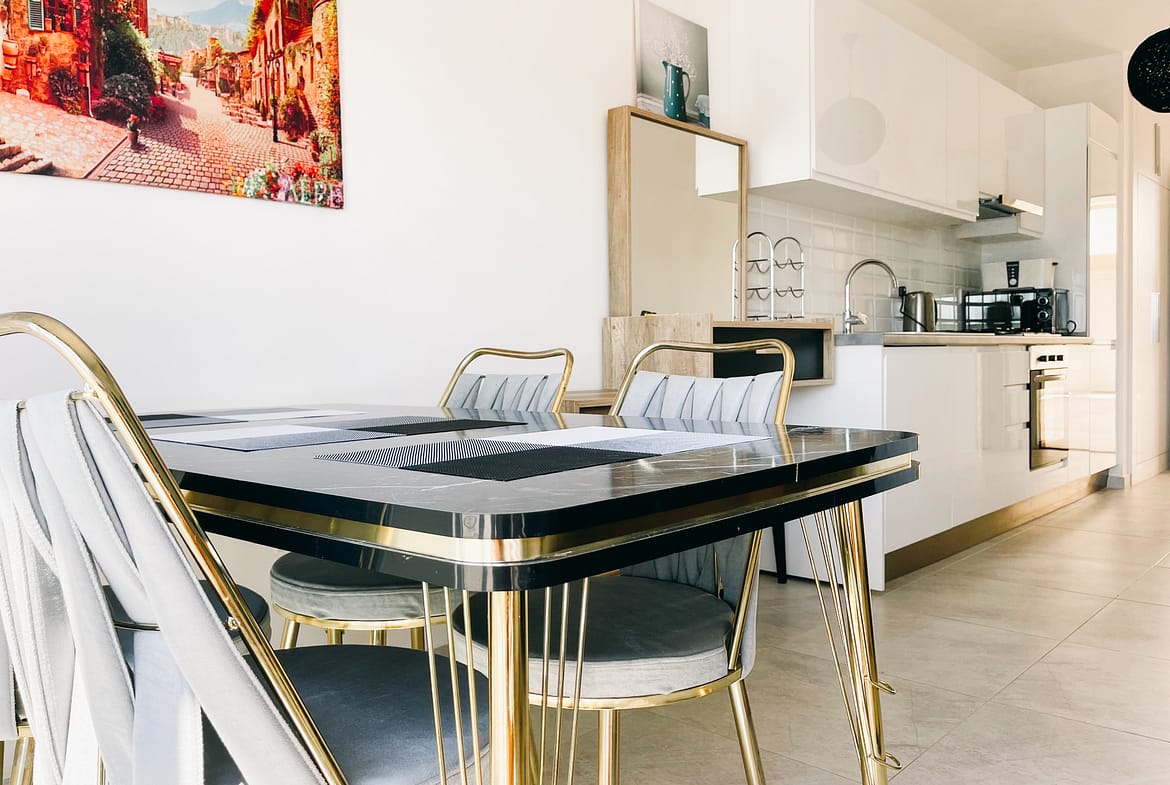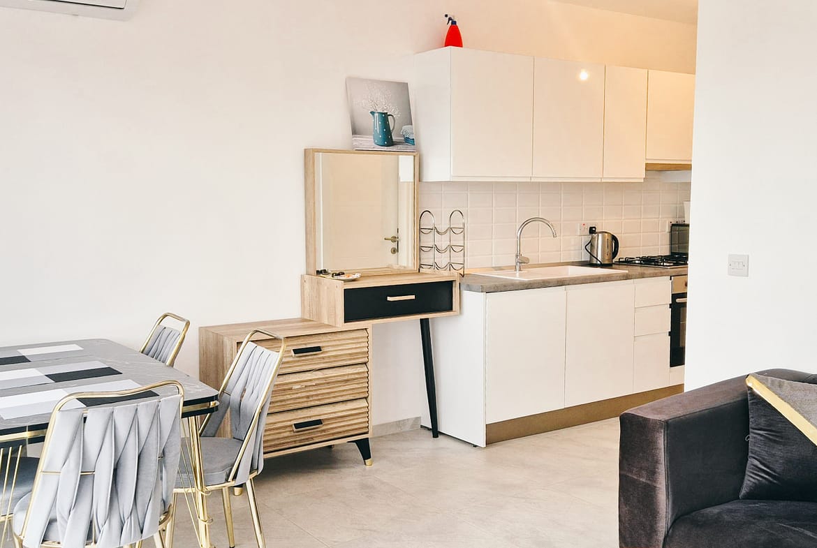 The apartment is tastefully and fully furnished with all the essentials such as air conditioning, washing machine, iron, hair dryer and TV. Gas/electric cooker, oven, refrigerator, freezer, toaster, kettle crockery/cutlery and kitchenware are also in the apartment.