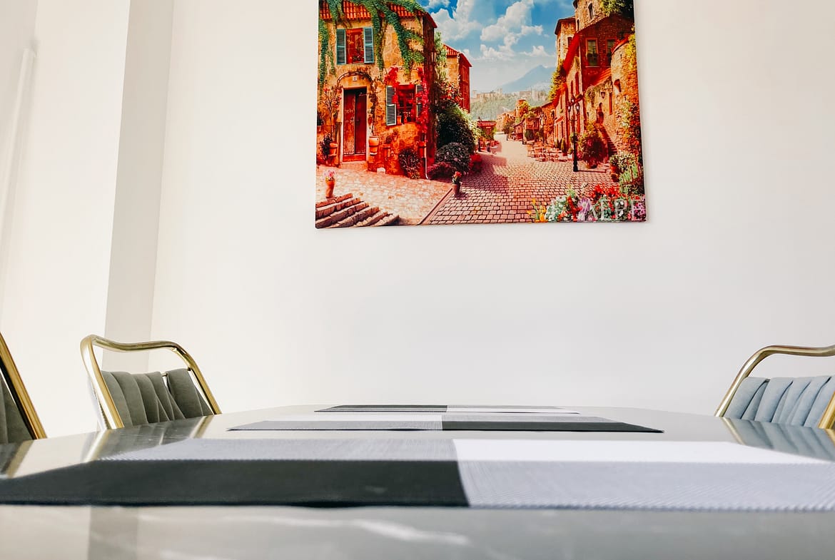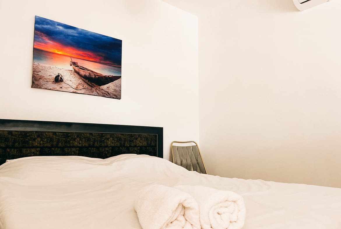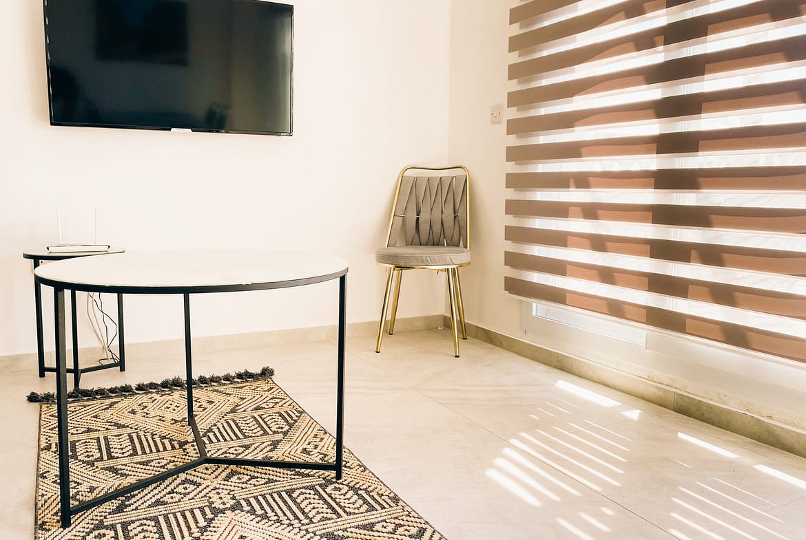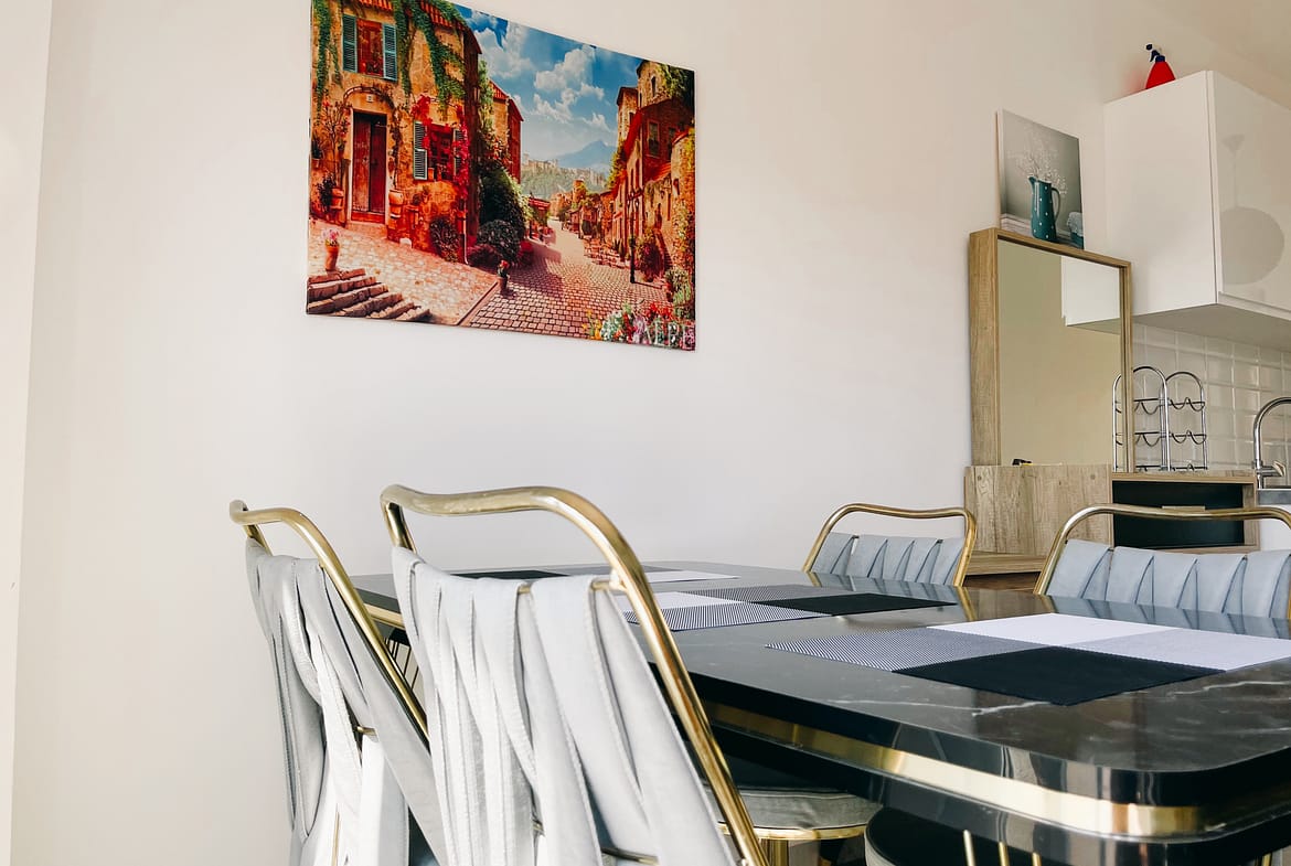 The apartment is tastefully and fully furnished with all the essentials such as air conditioning, washing machine, iron, hair dryer and TV. Gas/electric cooker, oven, refrigerator, freezer, toaster, kettle crockery/cutlery and kitchenware are also in the apartment.