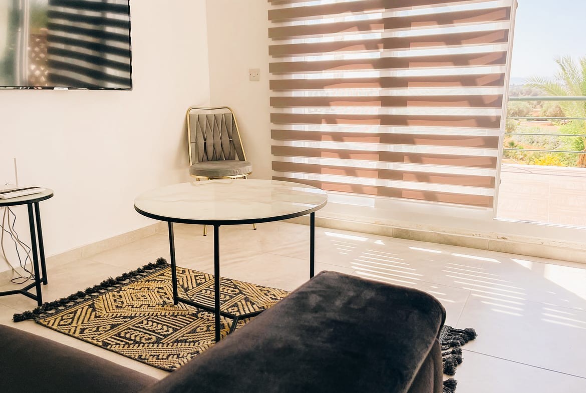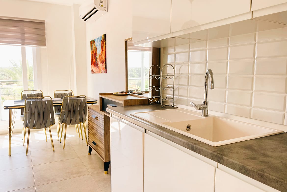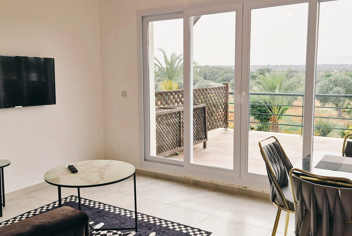 Your living space extends into a large Balcony area where you can relax and watch the beautiful view of the Mediterranean Sea at sunrise and sunset. The flat is located in Bafra, on the southeast coast of Northern Cyprus.