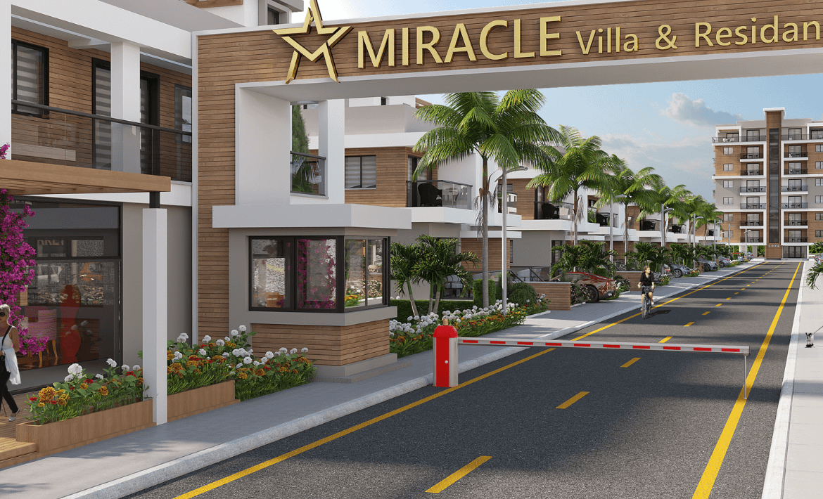 This 3-bedroom, 2-bathroom semi-detached duplex villa at Miracle Villa & Residence in İskele, Northern Cyprus, offers a harmonious blend of modern design and comfort. The villa features spacious interiors with high-quality finishes, ensuring a luxurious living experience. The open-plan living and dining areas are designed to maximize space and natural light, creating an inviting atmosphere for residents, whilst providing a sea view roof-top terrace.