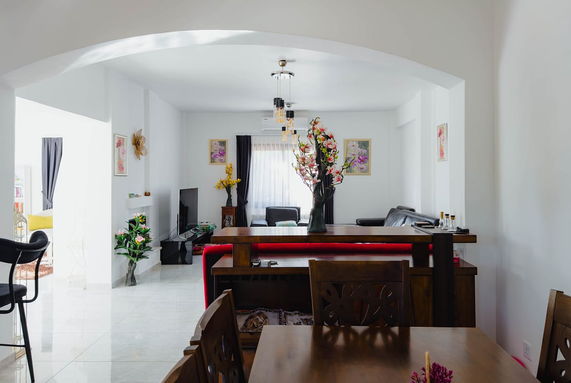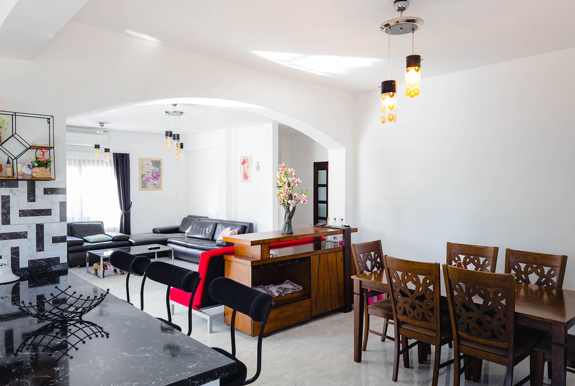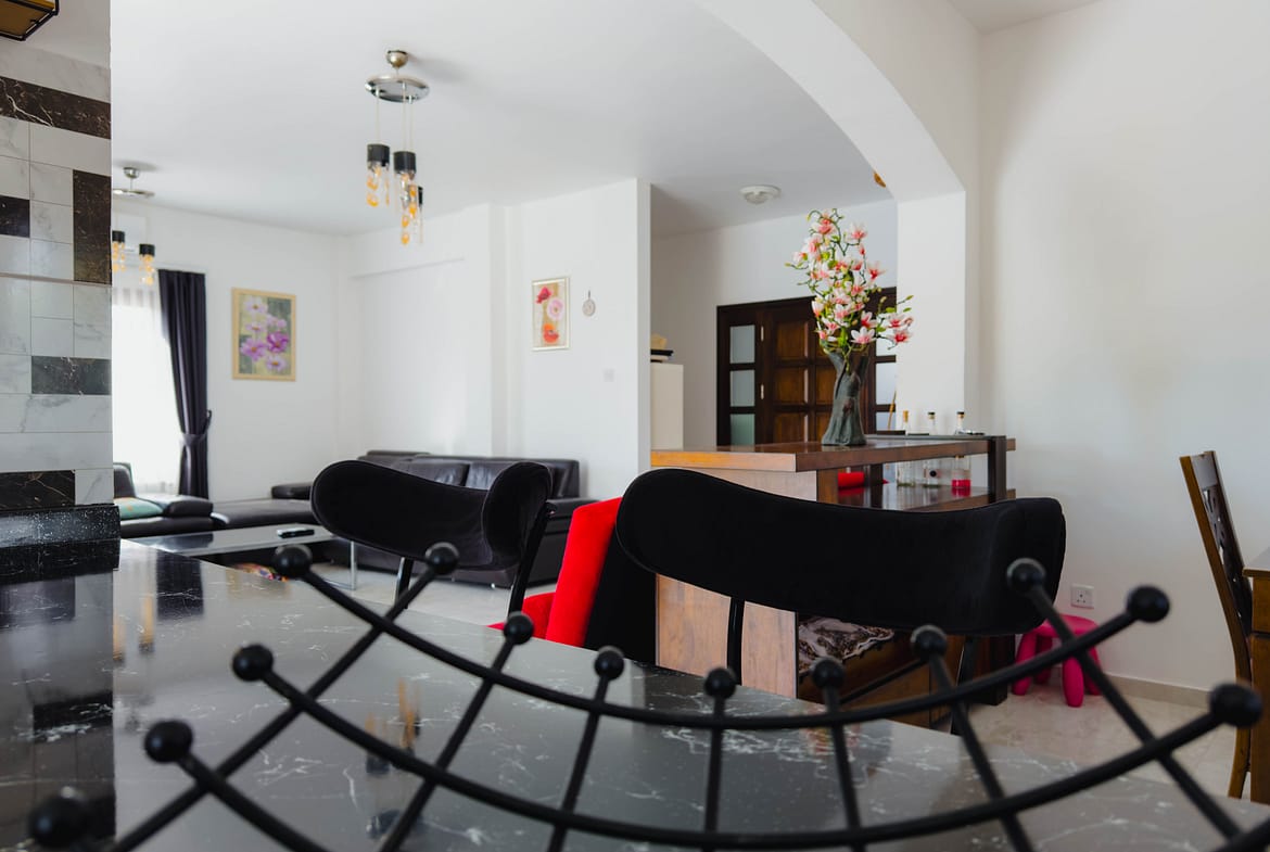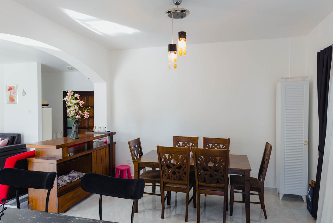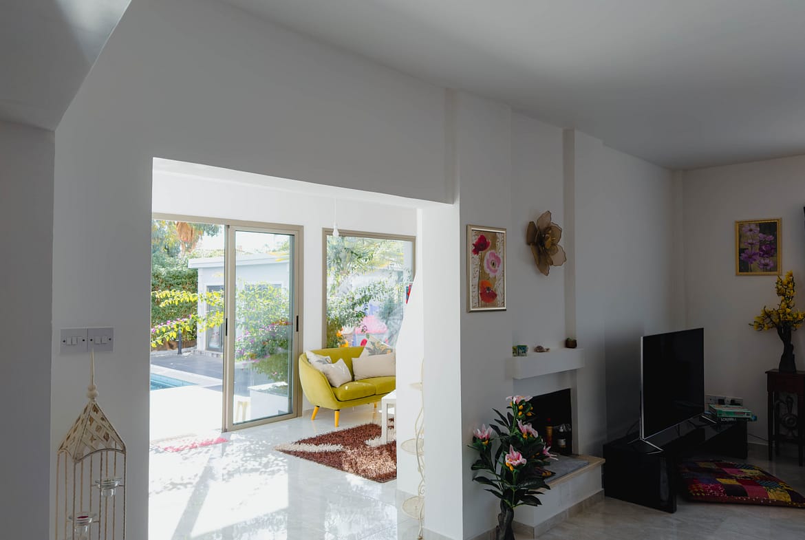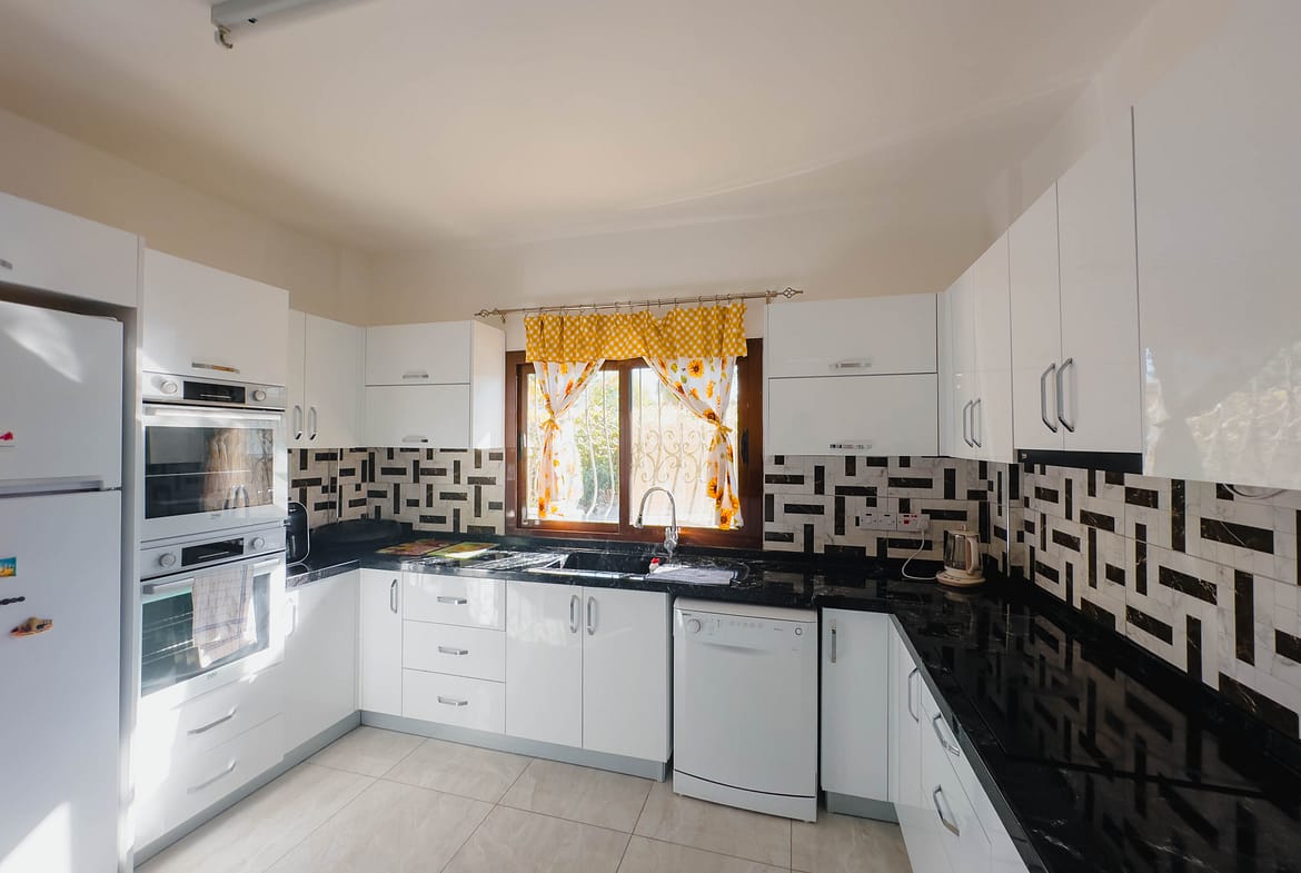The villa has a large fitted kitchen with all white goods, open plan dinning area. Large lounge and an additional large airy reception room leading to the pool.