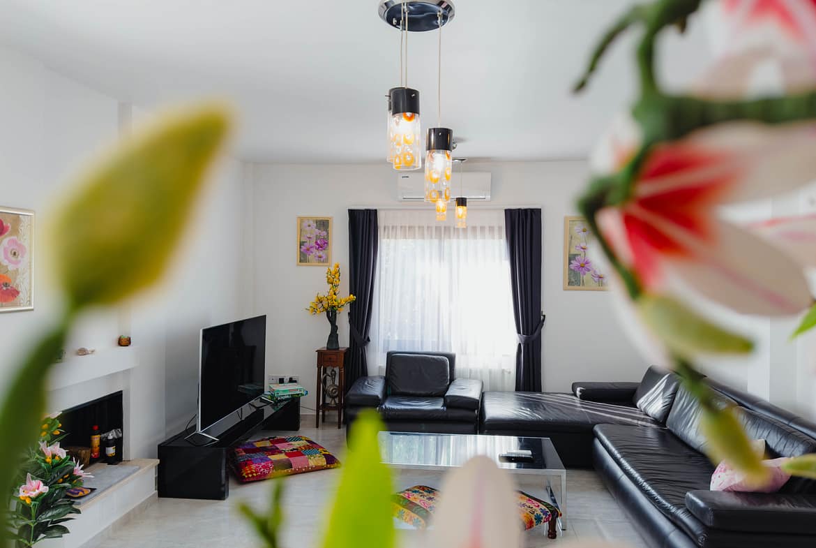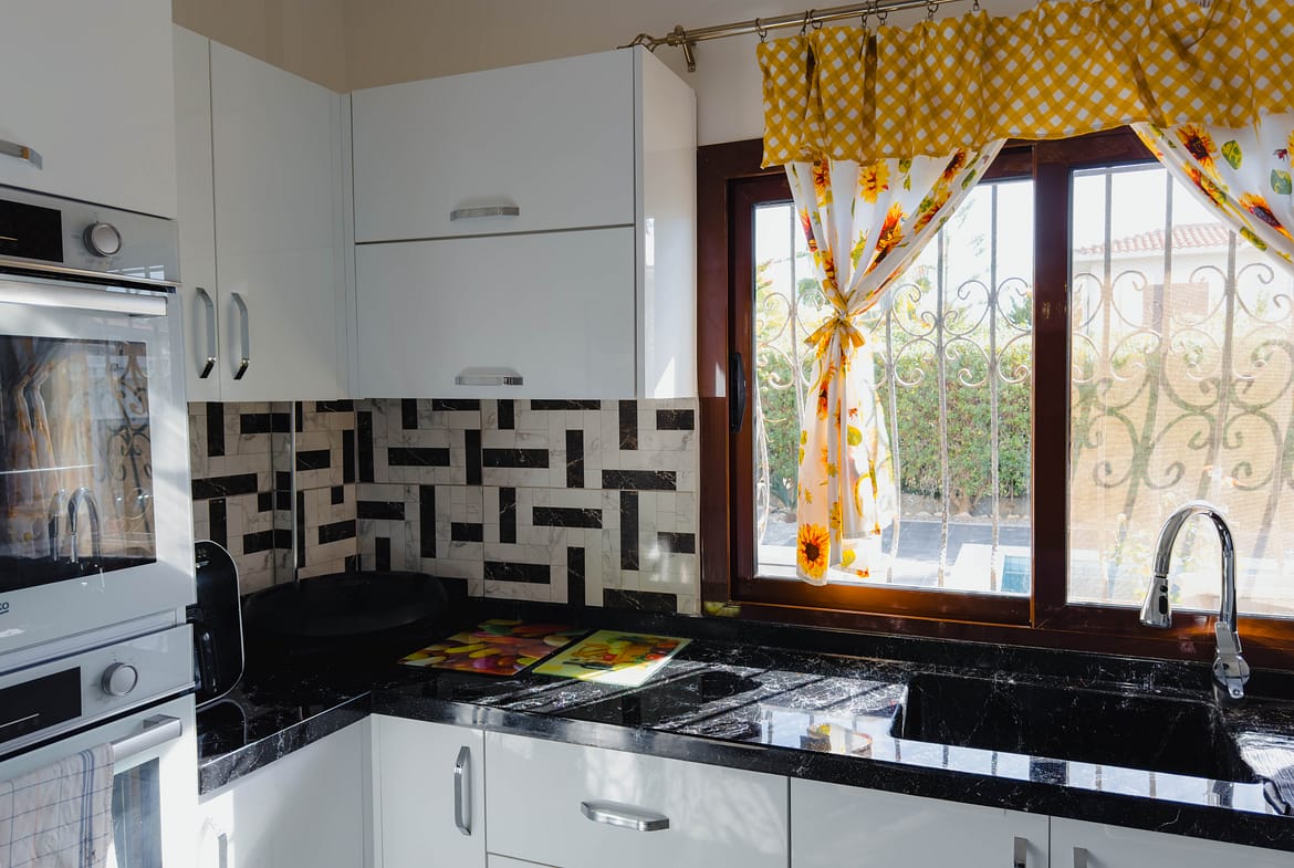 The Villa boasts four spacious Bedrooms, an ensuite with walk in shower and jacuzzi bath tub, a Family bathroom with bath tub and shower and an additional WC on the ground floor.