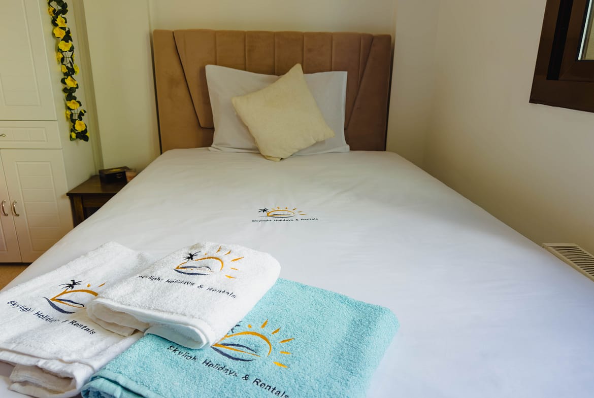 Upstairs bedrooms lead to a very large balcony with sea views.