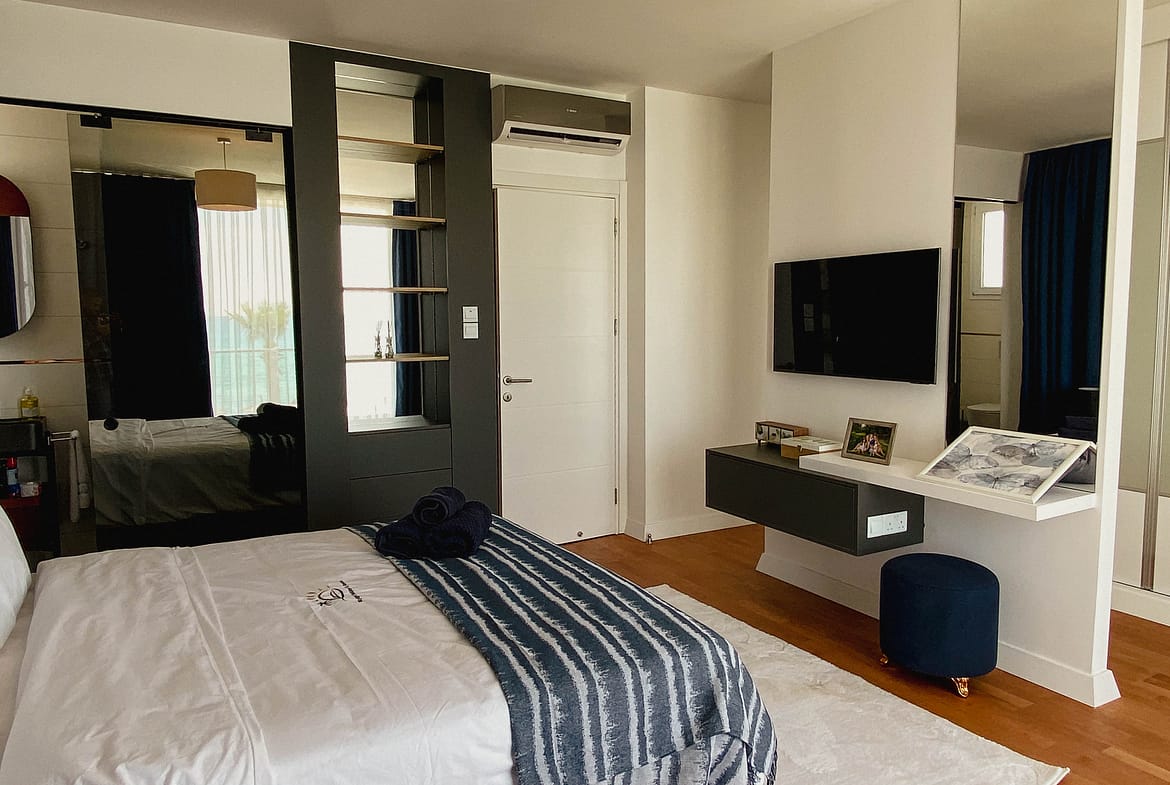This villa sits on the Mediterranean’s stunning shores, offering breathtaking views of turquoise waters and golden sands. The perfect blend of serenity and luxury, it provides an ideal space for upscale living.
