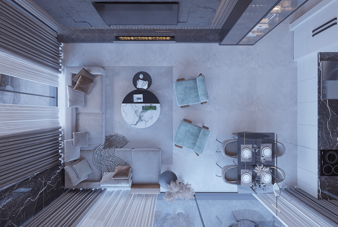 - Spacious Layout: 2 bedrooms, 1 bathroom, open-plan living and dining area with a sleek modern kitchen.