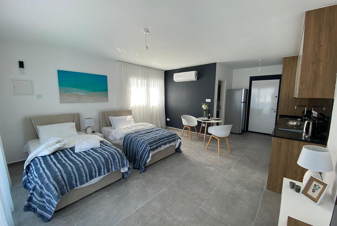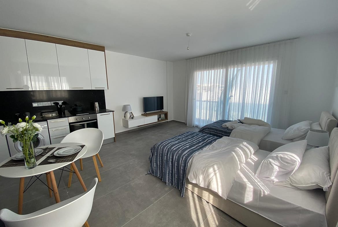Discover the perfect blend of comfort and coastal elegance with this stunning studio penthouse in Four Seasons Life 3, nestled in the picturesque harbour village of Bogaz. Just a short stroll from a private sandy beach, this exquisite property offers breathtaking views and world-class amenities.